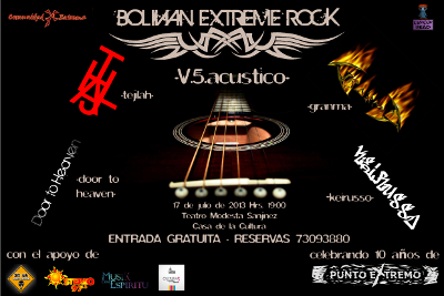 La Comunidad Extrema y CooCooHead se lanzan en un emprendimiento conjunto de volver a organizar un Bolivian Extreme Rock. Ahora la quinta versión de este Punto Extremo 10 Años – Parte 2evento, que tiene como finalidad apoyar a la música hecha en Bolivia.